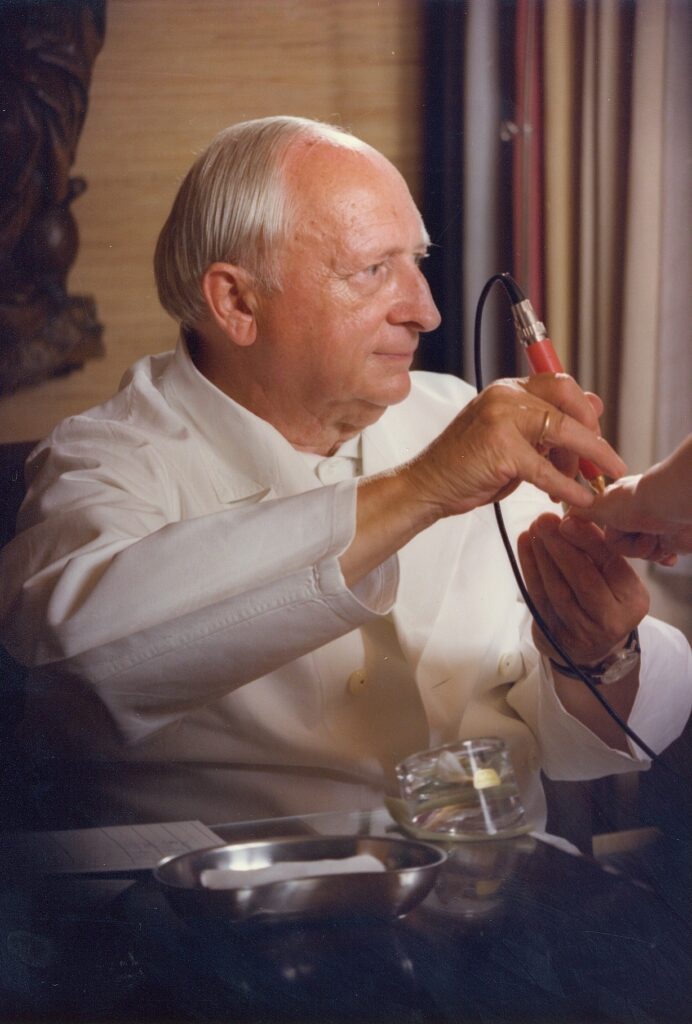 Dr. Voll war ein deutscher Arzt und Wegbereiter der modernen komplementären Medizin. Seine unermüdliche Forschung führte zur Entwicklung der EAV, die er wissenschaftlich dokumentierte und die bis heute weltweit angewandt wird. Er gilt als einer der wichtigsten Köpfe in der Verbindung von Akupunktur und Technologie.