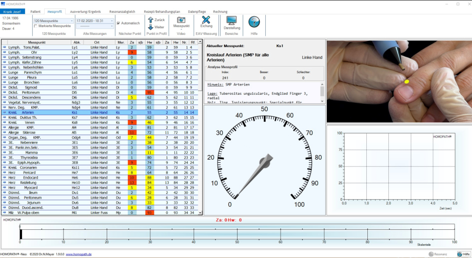 Die Software HOMOPATH®-Neo ist eine computergestützte Lösung, die Therapeuten bei der Elektroakupunktur nach Voll (EAV) unterstützt. Sie automatisiert das Aufzeichnen und Auswerten von Messprofilen und bietet mittels Künstlicher Intelligenz (KI) Vorschläge für den Resonanzabgleich mit Waves zur Erstellung eines individuellen Behandlungsplans.